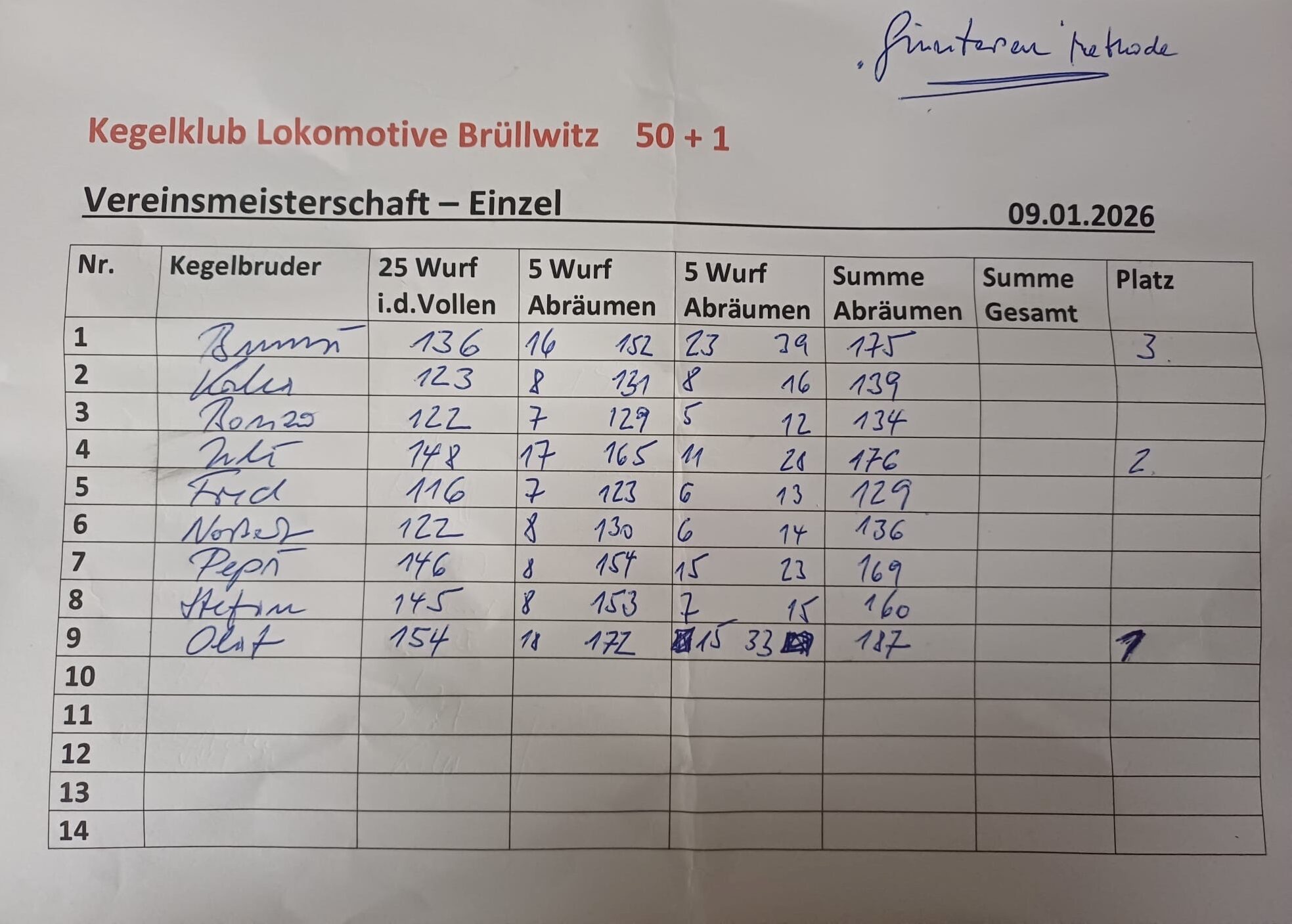Ermittlung des neuen Jubiläumsmeister anläßlich unseres 50-jährigen Bestehens
