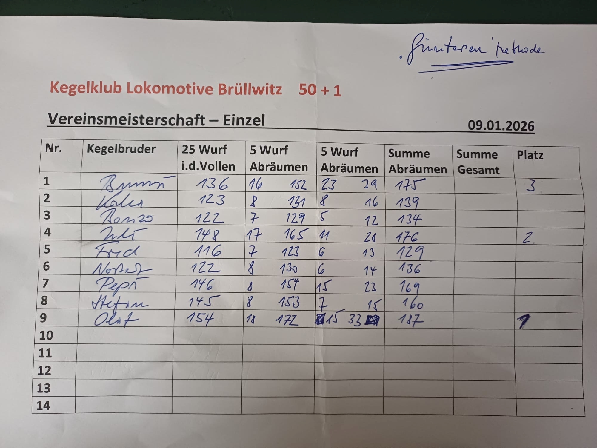 Ermittlung des neuen Jubiläumsmeister anläßlich unseres 50-jährigen Bestehens